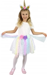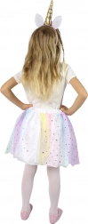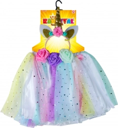 Proměňte své dítě v kouzelného jednorožce s tímto barevným kostýmem, který zahrnuje sukýnku tutu a čelenku s jednorožcem. Tato sada je ideální pro děti, které si chtějí užít pohádková dobrodružství při hraní. Sukně je zdobena barevným tylem s dekorem hvězdiček a je navržena tak, aby se snadno přizpůsobila díky elastickému pasu.