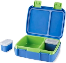 Tento obědový box je skvělý pro děti ve věku 3+. Nabízí bezpečné uzavření a snadné použití zámků, takže je ideální pro malé děti. Díky odnímatelnému tácu s 2 částmi je vhodný do mikrovlnné trouby, stejně jako 2 samostatné nádoby na svačinu s víčky. Má pružnou rukojeť pro snadné přenášení a veškeré komponenty lze mýt v myčce.