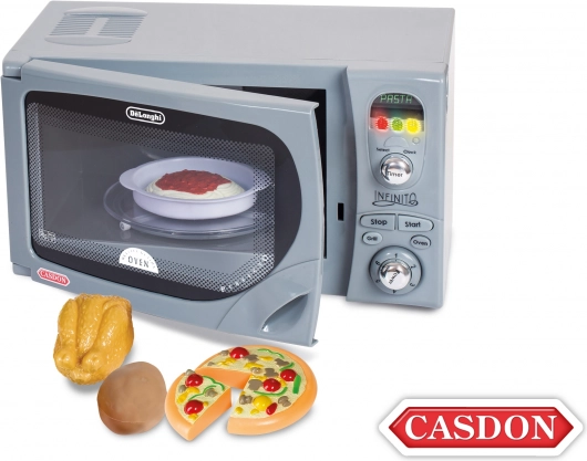 Cink! Tvoje večeře je teplá a připravena k servírování. Tato dokonalá mikrovlnná trouba DeLonghi vypadá jako skutečná. Zvol si některý z programů, dobu ohřevu a už jen sleduj, jak se talíř otáčí.
