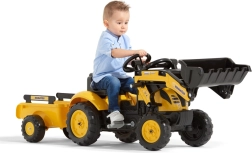 Dopřejte malým stavitelům nekonečnou zábavu se šlapacím traktorem FALK na oficiální licenci KOMATSU. Tento robustní traktor pro děti od 2 do 5 let nabízí funkční přední lžíci, odpojitelný přívěs a klakson na volantu. Je navržen a vyroben 100% ve Francii s důrazem na kvalitu a udržitelnost – obsahuje min. 40 % recyklovaného plastu. Díky širokým kolům a zabudovanému řetězovému pohonu je jízda stabilní a bezpečná, a to až do nosnosti 30 kg.
