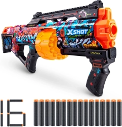 Připravte se na velkolepou zábavu s největší pěnovou blástr pistolí z řady X-Shot Skins! Model Last Stand Graffiti kombinuje ohromný dostřel až 27 m, rychlou střelbu a skvělou přesnost. Automaticky se otáčející bubnový zásobník pojme 14 šipek a v balení najdete celkem 16 šipek s technologií vzduchových kapes pro rychlejší, delší a přesnější výstřely.