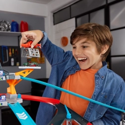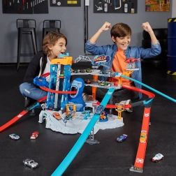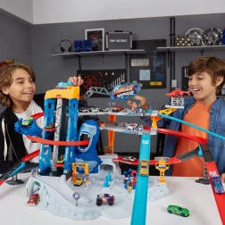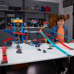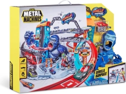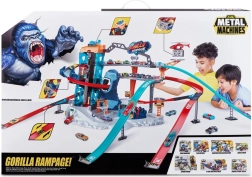 Závodní dráha Metal Machines Gorilla Garage přichází s opravárenskými stanicemi a plošinou pro záchranný vrtulník, který dokáže převézt vaše vozidla. Kolem se ovšem zoufale prohání obrovský gorilí strážce, připravený zaútočit! Dokážete projet jeho velkými čelistmi a uprchnout včas?