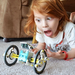 Tato kreativní sada rozvíjí logické myšlení, trpělivost a technické dovednosti. Pomocí solárního panelu a převodů si děti postaví pohyblivé modely – od robota se zvířecí chůzí až po klouzající lodě či surfaře. Bez baterií, pouze na slunce – skvělý způsob, jak hravou formou poznat obnovitelné zdroje energie.