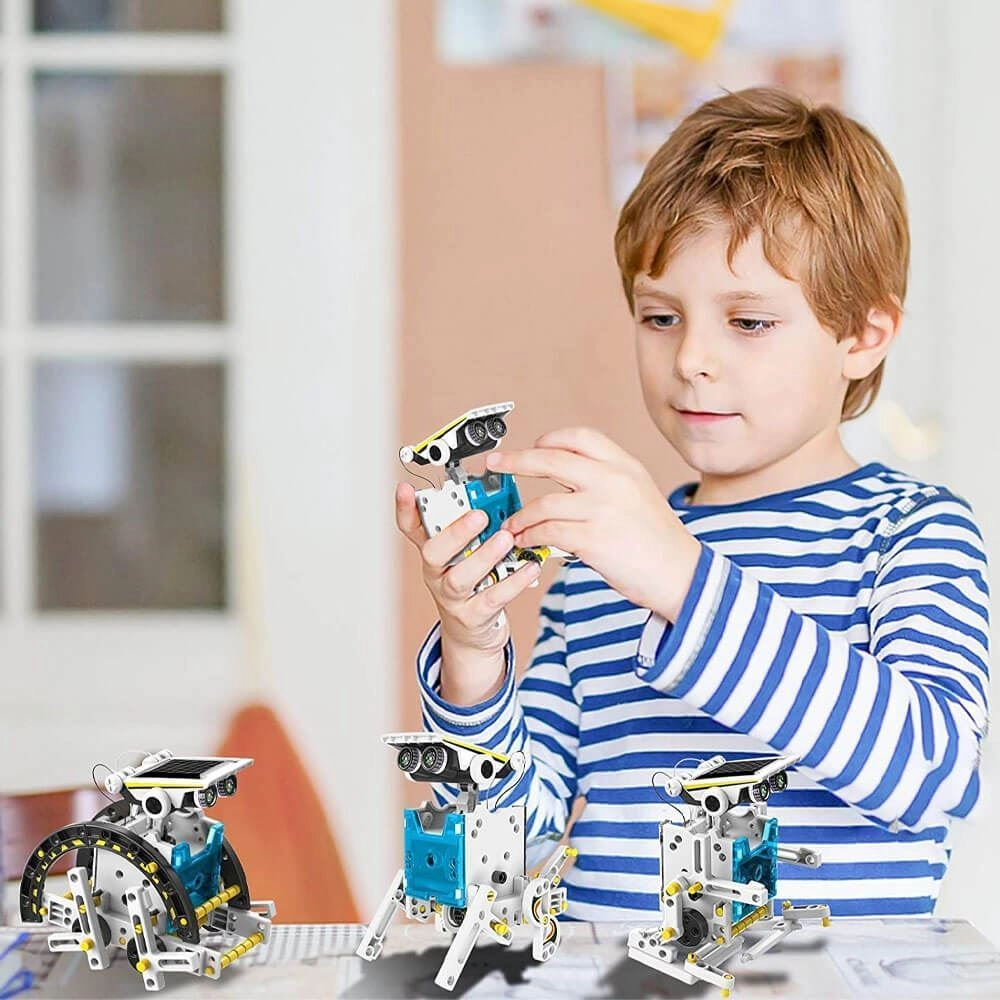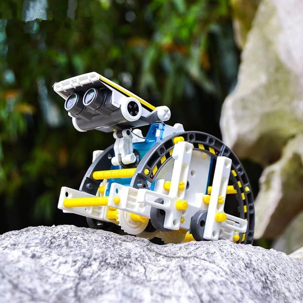 Objevte zábavný svět techniky s touto edukativní solární stavebnicí 14 v 1, která učí děti využívat energii slunce k pohonu různých modelů robotů a vozítek. Sada nabízí až 14 přestavitelných modelů, dvě úrovně obtížnosti a provoz na souši i ve vodě. Ideální pro malé konstruktéry od 10 let. Pro správnou funkci je nutné silné přirozené sluneční světlo.