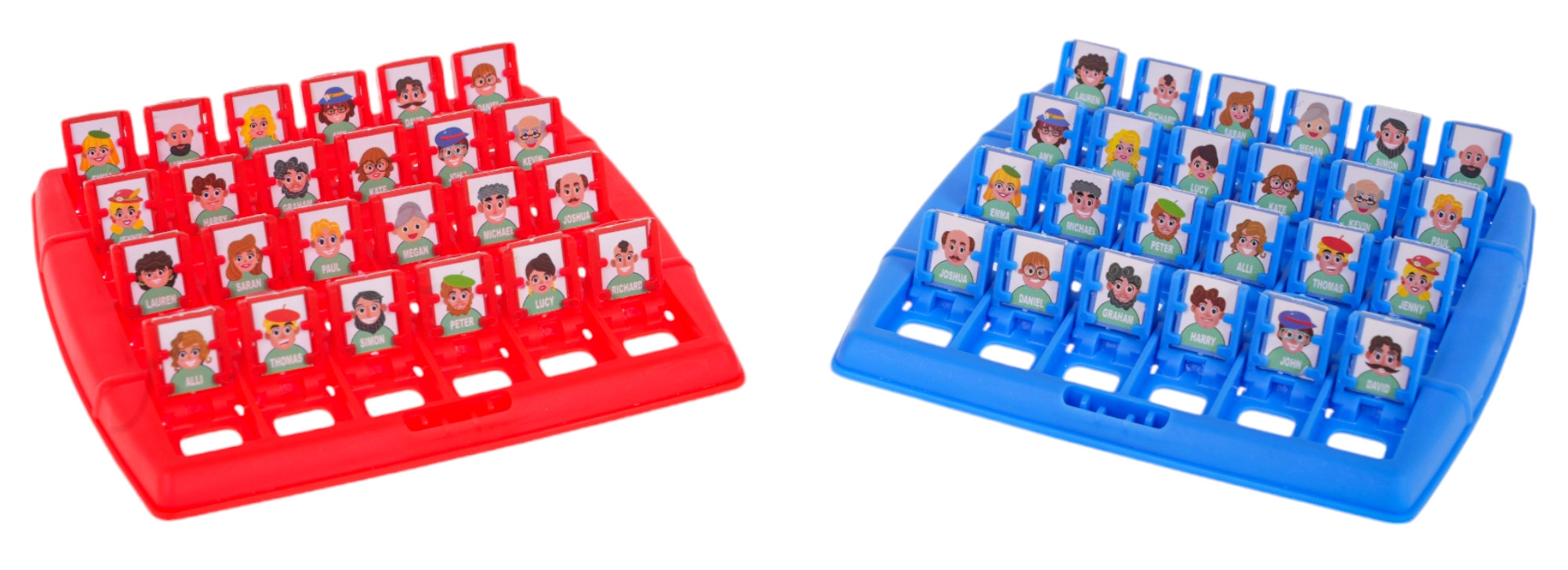 Oblíbená hádací hra pro 2 hráče. Každý hráč má svou planžetu s výklopnými okénky a tajně zvolenou postavou. Pomocí promyšlených otázek s odpovědí „ano“ nebo „ne“ postupně zužujete výběr, až správně uhodnete, koho si soupeř vybral. Varianta Pingwin přináší svěží design a zábavu pro celou rodinu.