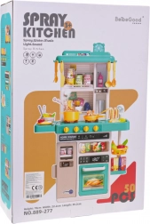 Tato dětská kuchyňka přináší realistickou hru na vaření díky podsvíceným hořákům, otočným knoflíkům a zvukům smažení i vaření. Z jednoho hořáku se uvolňuje jemná vodní pára, která umocní zážitek. Kohoutek s tekoucí vodou umožní malým kuchařům oplachovat nádobí jako v opravdové kuchyni.