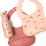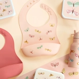 - 2× silikonový bryndák (1× s motivem motýlků, 1× jednobarevný)