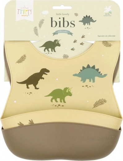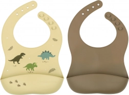 - 2 ks silikonových bryndáků (1x s motivem dinosaurů, 1x jednobarevný)
