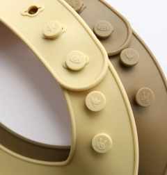 Praktická sada dvou silikonových bryndáků pro pohodlné a čisté stolování – jeden s veselým motivem dinosaurů a druhý v jednobarevném provedení. Bryndáčky jsou voděodolné, snadno omyvatelné, s hlubokou záchytnou kapsou a nastavitelným zapínáním pro perfektní fit.