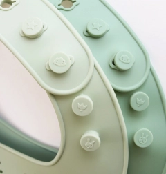 Široká a tvarovaná kapsa zachytí většinu drobků a kapek, takže oblečení i stůl zůstávají čisté a děti mohou jíst pohodlněji.