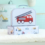 Stylová sada dvou kufříků z odolného kartonu s motivem vozidel je ideální pro ukládání hraček, drobností i výtvarných potřeb. Každý kufřík má kovové madlo a spolehlivou sponu pro bezpečné zavření.