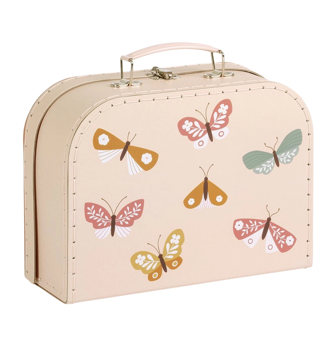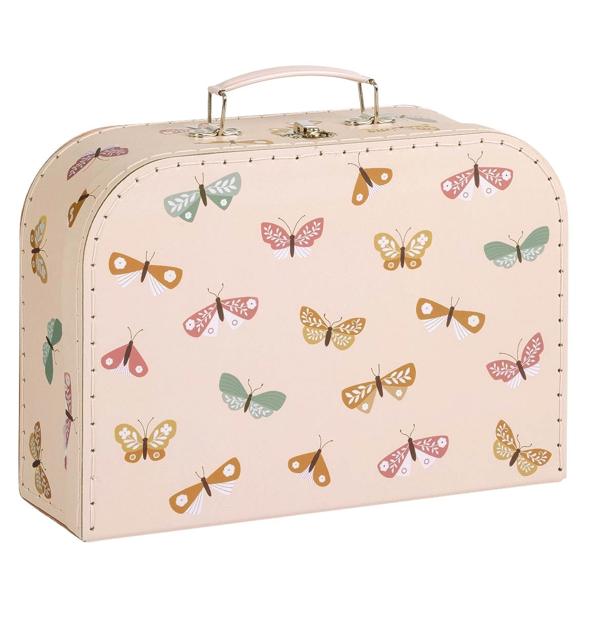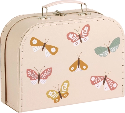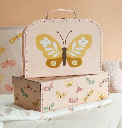 Praktická a stylová sada dvou kufříků v jemném béžovém tónu s barevnými ilustracemi motýlků přinese pořádek i radost do každodenního používání. Větší i menší kufřík poslouží na hračky, pastelky, sešity, drobné poklady nebo jako dekorativní úložné boxy do dětského pokoje.