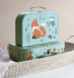 Objevte kouzelnou sadu dvou kufříků s ilustracemi lišky, sovy a dalších lesních kamarádů. Díky dvěma velikostem snadno uspořádáte hračky, pastelky i drobné poklady. Odolná kartonová konstrukce s kvalitním prošíváním vydrží každodenní používání, zatímco kovové madlo a spona zajistí pohodlné nošení a bezpečné uzavření.