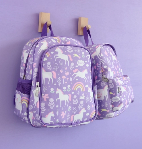 Pohádkový design s jednorožci, květinami a duhou si děti zamilují, ať už míří do školky, na hřiště nebo na víkend k babičce.