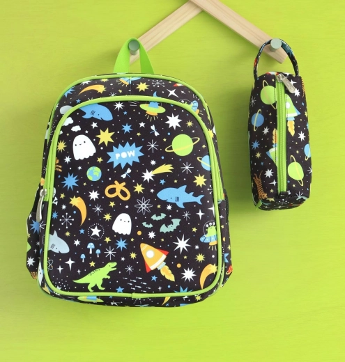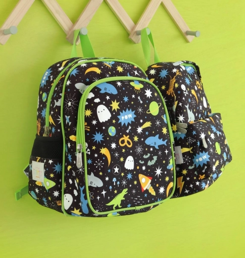 Stylový dětský batůžek s motivem vesmíru je ideální do školky i na výlety. Nabízí prostornou hlavní komoru, izolovanou přední kapsu na svačinu a dvě boční kapsy na láhev. Pro pohodlí a bezpečí má polstrované ramenní popruhy, hrudní popruh proti sklouznutí a prodyšný polstrovaný zádový panel.