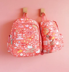 Stylový korálově růžový batoh s veselým motivem potěší malé cestovatele. Díky polstrovaným ramenním popruhům, hrudnímu popruhu proti sklouznutí a prodyšnému polstrovanému zádovému panelu se nosí pohodlně po celý den. Izolovaná přední kapsa udrží svačinu a nápoje déle čerstvé, zatímco boční kapsy jsou ideální na láhev s pitím.