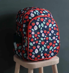 Stylový dětský batoh s motivem jahod je ideální do školky, školy i na výlety. Nabízí prostornou hlavní komoru, izolovanou přední kapsu na svačinu, boční kapsy na láhev a polstrované popruhy s hrudním páskem pro pohodlné a bezpečné nošení.