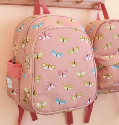 Stylový růžový batůžek s motivem motýlků od A Little Lovely Company je ideální do školky i na výlety. Nabízí prostornou hlavní komoru, izolovanou přední kapsu na svačinu, boční kapsy na láhev a polstrované, nastavitelné popruhy s hrudním páskem pro bezpečné a pohodlné nošení.