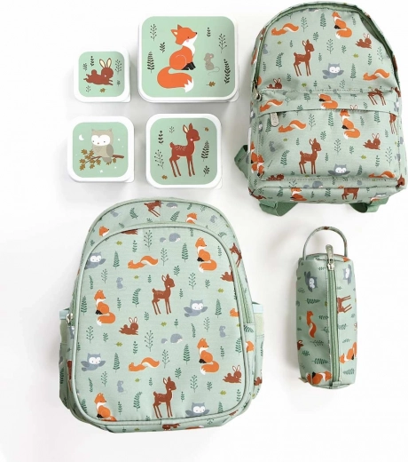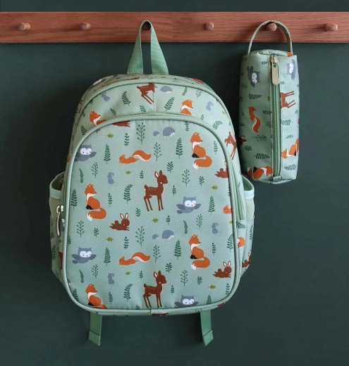 Prostorný mátově zelený batoh s motivem lesních zvířátek je ideální do školky i na výlety. Nabízí velkou hlavní komoru, izolovanou přední kapsu na svačinu, boční kapsy na láhev a polstrované popruhy s hrudním páskem pro pohodlné a bezpečné nošení.