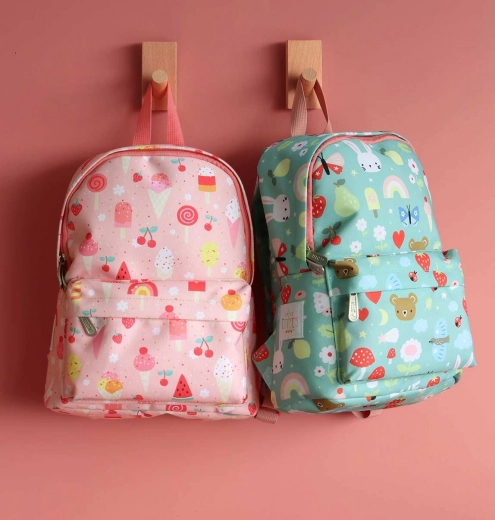 Roztomilý dětský batůžek od 2 let s motivem zmrzliny nabízí prostornou hlavní komoru, přední kapsu na zip a polstrované popruhy pro pohodlné nošení. Lehký a pevný polyester s barevným potiskem doplňuje hrudní popruh pro bezpečné držení na ramenou.