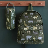Stylové šedé pouzdro na pastelky se vzorem zvířat ze savany je vyrobeno z udržitelného polyesteru. Má zipové zapínání, je podšité a nabízí pohodlnou rukojeť pro snadné přenášení. Ideální do školy, na kroužky i na cesty.