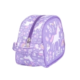 Tato roztomilá růžová toaletní taštička s motivem jednorožců a duhy udrží všechny dětské hygienické potřeby pěkně pohromadě. Díky prostorné hlavní přihrádce se do ní vejde šampon, mýdlo, zubní kartáček, pasta i další drobnosti. Praktické poutko umožní taštičku pohodlně přenášet nebo zavěsit.