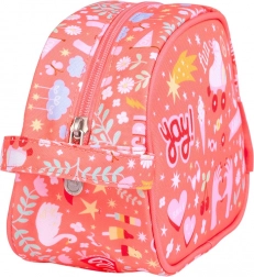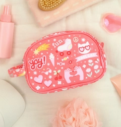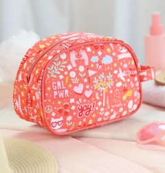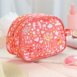 Stylová a funkční toaletní taštička pro děti s hravým designem „GRL PWR“, srdíčky a veselými motivy. Díky kompaktním rozměrům 20,5 × 14 × 9,5 cm se vejde do batohu i kufru a zároveň nabídne dostatek místa na všechny hygienické potřeby.