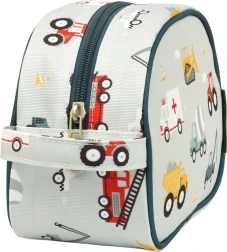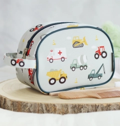 Tato stylová toaletní taštička A Little Lovely Company s hravým potiskem aut, bagrů a dalších strojů udrží dětské hygienické potřeby pěkně pohromadě. Je vyrobena z odolného textilního materiálu, má hladce běžící zip a postranní poutko pro pohodlné nošení i zavěšení v koupelně.