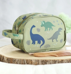 Udržte dětskou kosmetiku přehledně na jednom místě díky roztomilé toaletní taštičce s dinosaury. Lehká, odolná a pohodlná na nošení – perfektní volba do batohu i kufru.