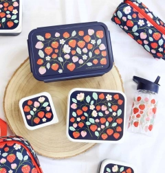 Tato roztomilá lahev od A Little Lovely Company s motivem jahod je navržená pro malé ručičky a každodenní použití. Díky spolehlivému uzávěru je odolná proti protékání a praktické brčko usnadňuje pití studených nápojů doma, ve školce i na cestách.