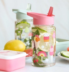Průhledná dětská lahev na pití A Little Lovely Company s potiskem zmrzliny nabízí nepropustné provedení, pohodlné pití přes brčko a objem 450 ml. Ideální do školky i na výlety a skvěle ladí s dalšími doplňky ve stejném designu.