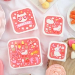 Objevte praktickou sadu 4 krabiček na svačinu od A Little Lovely Company, které díky rozdílným velikostem skvěle pokryjí oběd, ovoce, zeleninu i drobné pamlsky. Krabičky mají jednotný hravý potisk a lze je snadno vnořit do sebe, takže doma nezaberou téměř žádné místo.