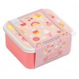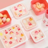 Roztomilá sada čtyř svačinových krabiček A Little Lovely Company se stejným motivem zmrzliny v různých velikostech. Krabičky se snadno otevírají a zavírají, jsou stohovatelné do sebe pro úsporu místa a ideální pro oběd, svačinu i drobnosti na cesty.