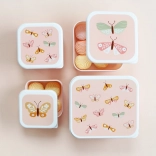 Sada je navržena pro přehledné a hygienické balení potravin. Jednotlivé krabičky mají stejný hravý motiv motýlků a rozměrově se do sebe vkládají, takže doma šetří místo. Jsou skvělé pro ovoce, sušenku, sendvič i drobné snacky.