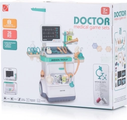 Tato hrací sada je ideální pro děti, které se chtějí stát doktory. Obsahuje 26 kusů příslušenství včetně vozíku na příslušenství s policemi, rentgenového panelu s osvětlením a dalších medicínských doplňků. Děti se mohou těšit na interaktivní hraní se zvuky a světly.
