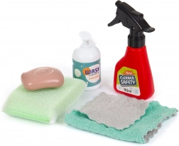 Součástí je vše, co dítě k úklidu potřebuje – od smetáku a smetáčku s lopatkou přes hadříky a sprej až po výstražnou ceduli. Rozměry vozíku 71 × 31 × 33,5 cm zajišťují pohodlné ovládání i pro menší děti. Hračka je vyrobena v souladu s evropskými bezpečnostními normami.