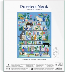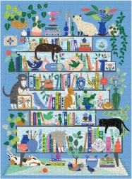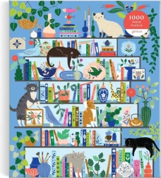 Barevné puzzle s motivem zvědavých koček mezi knihami a rostlinami potěší milovníky zvířat i literatury. Nabízí 1000 dílků, kvalitní tisk a rozměr 68,6 × 50,8 cm. Vyrobeno z FSC recyklovaného papíru a potištěno netoxickými barvami – skvělé pro relax, trénink soustředění i jako stylový dárek.