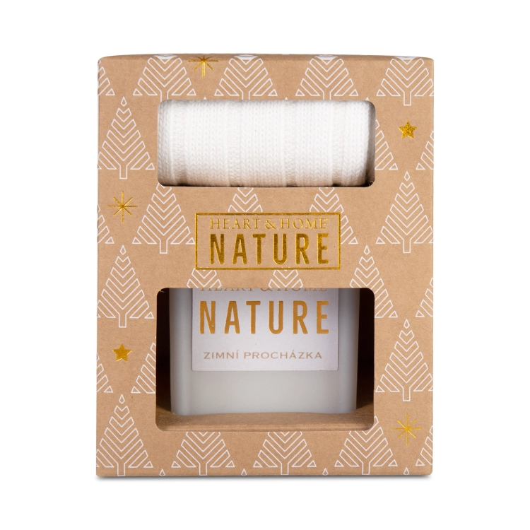 Potěšte své blízké stylovým vánočním dárkem: sada měkoučkých ponožek a vůně svíčky Heart and Home – Zimní procházka. Perfektní volba pro chvíle relaxu, zimní pohodu a voňavou atmosféru domova.