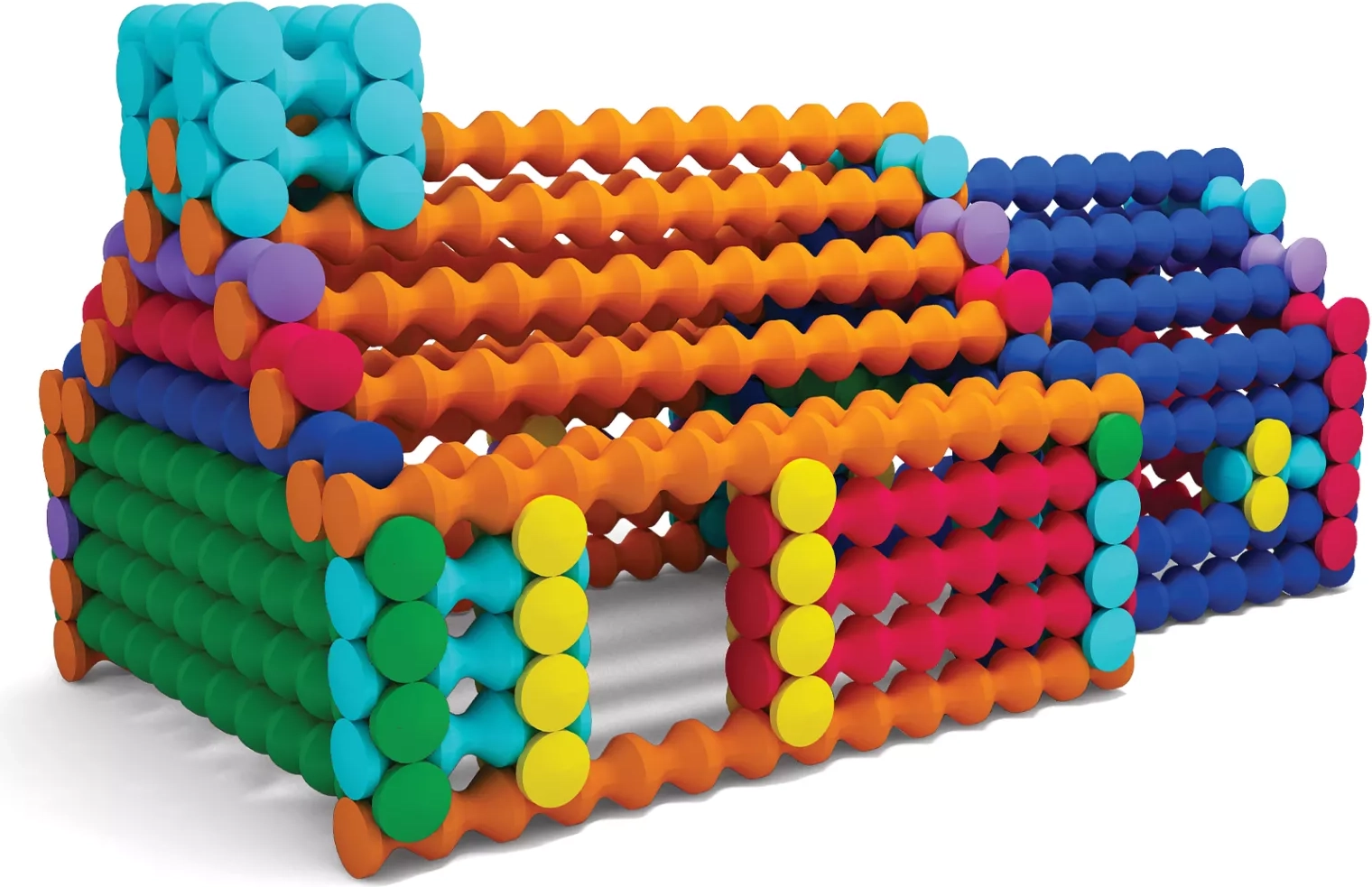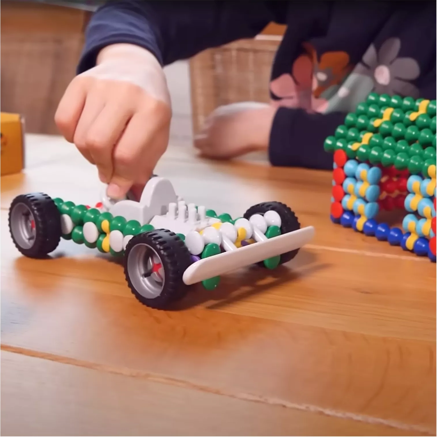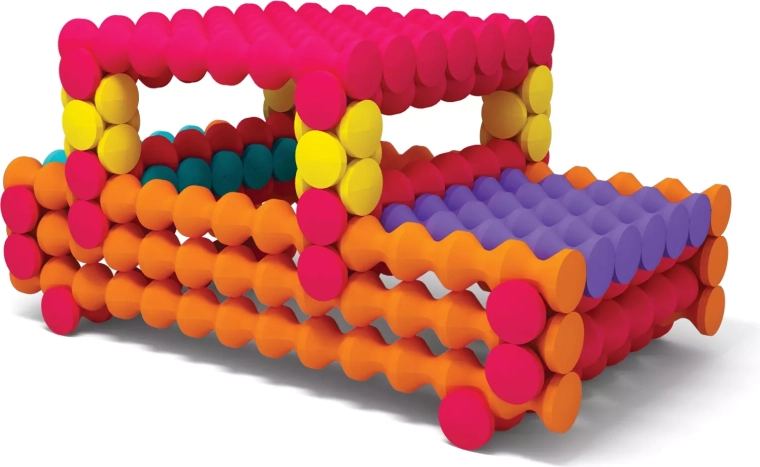 Barevné, vlnité tyčinky a kulaté konektory se dobře drží a díky čtyřbodovému napojení drží modely pevně pohromadě. Ideální pro malé ruce a rozvoj jemné motoriky.