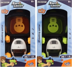 Tato sada je ideální pro děti a mladé střelce, kteří si rádi testují své dovednosti a přesnost. Terč ve tvaru dinosaura má zabudované počítadlo na baterie, které zobrazuje skóre a vydává zvukové efekty při každém zásahu.