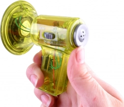 Změnič hlasu je napájen 1x12V baterií (je součástí balení) a jeho ergonomický design jej činí snadno použitelným i pro menší děti. Lázeň z lehkého plastu zaručuje bezpečnost a jednoduchou manipulaci.