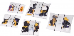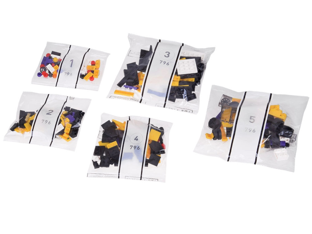 Kompletní set zahrnuje kostky, samolepky a přehledný obrázkový návod – vše, co potřebujete k úspěšné stavbě.