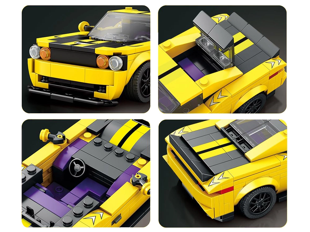 Objevte zábavné stavění technického sportovního auta v ikonické žluté barvě. Sada obsahuje 319 přesně tvarovaných dílků a umožní vám sestavit detailní model se závodním vzhledem. Po sestavení získáte kompaktní auto s plynulými liniemi, které díky funkčním kolům snadno jezdí.