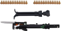 Pušku lze postavit na stojan, který je součástí sady, a užít si zábavu při střelbě s laserovým zaměřováním.