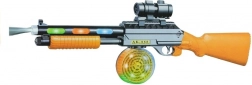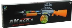 Špičkový design: Puška AK 868-1 se pyšní černou konstrukcí s hnědými prvky imitujícími dřevo. Je vybavena bubnovým zásobníkem na zlaté náboje a odnímatelným zaměřovačem, což zaručuje snadné zaměření cíle.