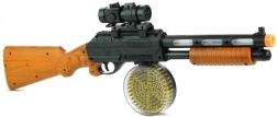 Černá konstrukce kombinovaná s hnědými detaily napodobuje skutečnou pušku. Bubnový zásobník a zaměřovač zvyšují realismus při hraní.