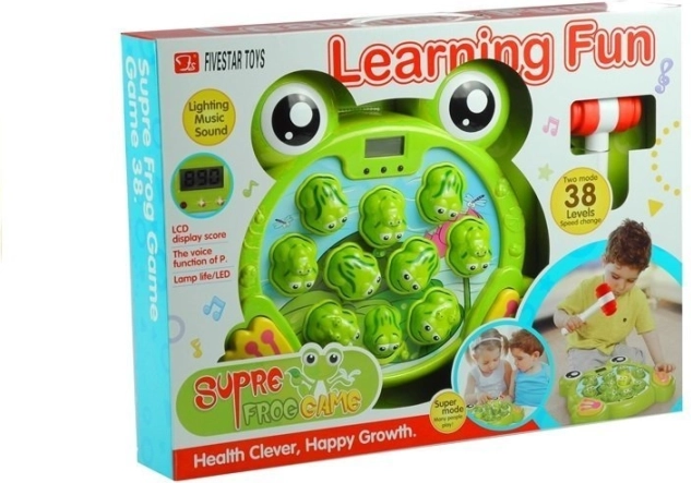 Frog‑theme herní deska se 10 žabkami a měkkým kladívkem přináší klasickou zábavu „tref žabku“. Jednoduchá pravidla děti rychle pochopí a díky více úrovním obtížnosti si hru užijí mladší i starší hráči. Přísavky na zadní straně zajistí stabilitu na hladkém povrchu a LCD displej přehledně ukazuje skóre.