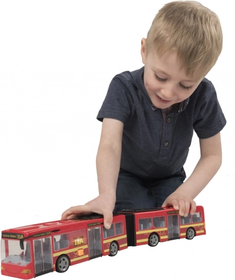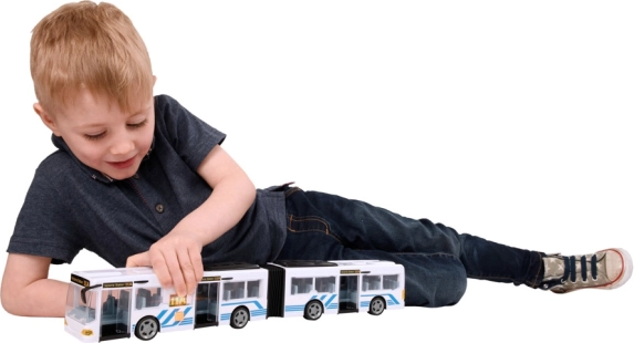 Autobus je pečlivě navržen s detailními okny, dveřmi a pružným středem, který napodobuje skutečný kloubový autobus.