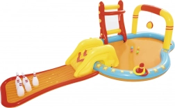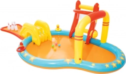 Dopřejte dětem léto plné smíchu a pohybu s nafukovacím vodním hracím centrem BESTWAY. Kombinuje mělký bazének, odnímatelnou skluzavku a zábavné hry jako kuželky, koš a házení kroužků. Díky integrovanému postřiku je hraní osvěžující i v horku. Snadná instalace, bezpečný mělký prostor a bohaté příslušenství zajistí nekonečnou zábavu, aktivní pohyb i příjemné ochlazení v letních dnech.