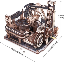 RoboTime Kosmodrom je precizně zpracovaná 3D dřevěná skládačka a kuličková dráha v jednom. Využívá důmyslné soukolí, výtahy a přepínače tratí, které společně vytvářejí plynulý, dynamický pohyb kuliček. Model můžete pohánět ručně nebo elektricky pomocí USB‑C kabelu (není součástí balení), a užít si tak nepřetržitou podívanou.